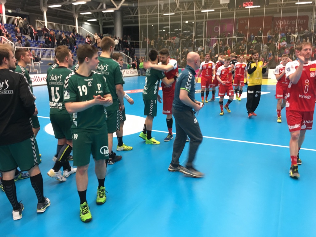 Noch zwei Mal holten sich die Gastgeber in den ersten 4 Minuten der zweiten Hälfte die Führung (12:11 und 13:12), von da an übernahmen wieder die Gäste das Kommando. Weiter als drei Treffer kamen sie zunächst aber nicht weg, auch weil Donderis Vegas im Essener Gehäuse ebenfalls einen guten Tag erwischt hatte. Dennoch führten die Saarländer nach 45 Spielminuten mit 17:19 und hatte die Sache im Griff. Auch als Lars Weissgeber von der Siebenmeter-Linie und dem Stand von 18:19 scheiterte und erste den Nachwurf im Kasten unterbrachte, bekamen die Saarländer nicht das Zittern. Im Gegenteil, sie erhöhten die Führung bis 4 Minuten vor Schluss auf 20:25 und brachten das sicher zu Ende – Jerome Müller traf vom Siebenmeterpunkt zuverlässig und Essen hatte keine Chance mehr in den Schlussminuten.